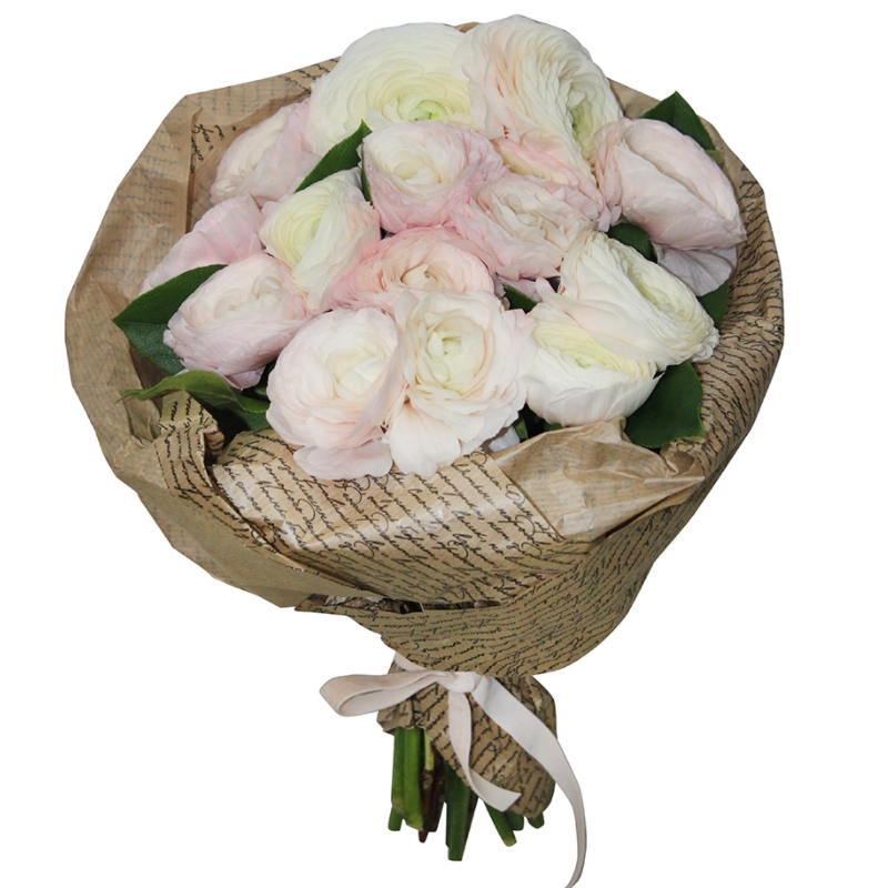 Букет из 15 ранункулюсов в крафте
